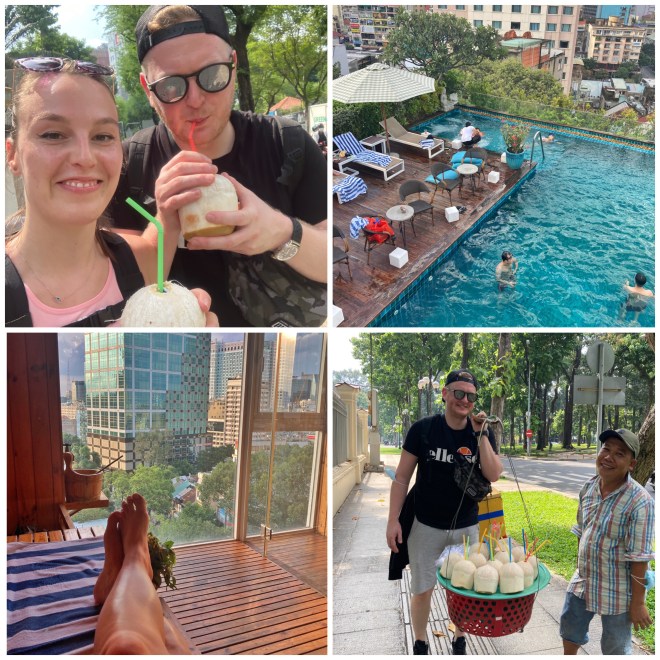 Phu Quoc leží v Thajském zálivu, těsně pod Kambodžou a je největším vietnamským ostrovem. Říká se, že je to ráj na zemi, ale v 50. letech sloužil jako obrovské vězení pro odpůrce francouzského režimu. Později vězení převzali Američané, kteří jej používali ke stejným účelům pro válečné zajatce. 😔 Vyrábí se tu rybí omáčka, chovají včely, pěstuje černý pepř a je tu prý nádherný podmořský svět, ale nám štěstí moc nepřeje. Skoro 70% plochy ostrova tvoří národní park, díky kterému je místo stále chráněno před invazí golfových hřišť a různých šílených lidských výmyslů. Hotely tu rostou zatím pouze u pláží. Ještě dáme chill a zítra se zase letíme do Saigonu! 🤘🌞
