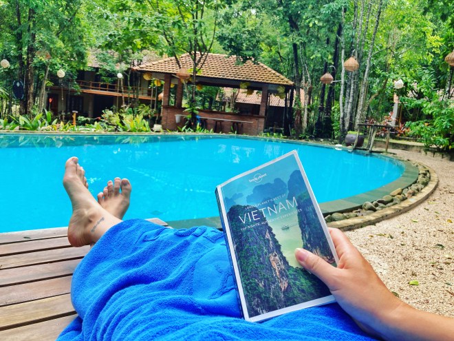 Tenhle ostrůvek jsem si zamilovala 🧡 hlavně pro jeho klid! Jistě záleží kde se ubytujete, ale my jsme po těch třech týdnech vlastně konečně našli to, co jsme hledali.. nebo alespoň já ano. Vzali jsme si na 4 dny ubytování v zapadlém bungalovu Valley Village, v příjemném tichém prostředí, kde uslyšíte jen kvákání žab a šelest větru a ti nádherní velcí motýli! Jsme tu ubytovaní téměř sami, ale přes den tu opravdu nepotkám ani živáčka pokud nepočítám zahradníka a pokojskou, takže bazén a zahradu máme jen pro sebe. 😌 Po tom co jsme zažili cestou ze severního ostrova Cat ba se toto nedá vůbec srovnat. Cesta nám zabrala celý den, brzy ráno jsme chytali první autobus, kdy jsem se bála, že už nám ujel, následovala cesta lodí, šíleně přecpaným autobusem, taxi, letadlo a odvoz z letiště. Cesta letadlem nízkonákladovkou přes celý Vietnam trvá dvě hodiny, což by šlo, ale ty děcka jak zase vřískali.. to jsem myslela, že už po dvou hodinách někomu třísknu! 😅 Proto si teď o to víc užívám ten klid a chill na Phu Quocu. Nikam moc nechodíme, nemáme potřebu, jen na snídani, která je famózní! Tohle místo určitě stojí za to i mimo sezónu, která je právě teď. Jsme tu v podstatě v období dešťů, tak asi proto tu skoro nikdo není. My však máme opět štěstí a až na pár dešťových sprch je tu krásně 😌 Tři týdny jsme byli v cca 35ti stupních, kdy se nedalo přes den moc chodit ven, abysme nebyli hned spraženi vedrem, za to tady dole je příjemnějších 27 🤩🌞 za mě super.