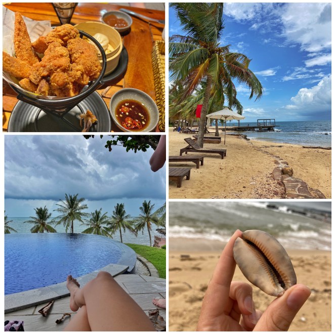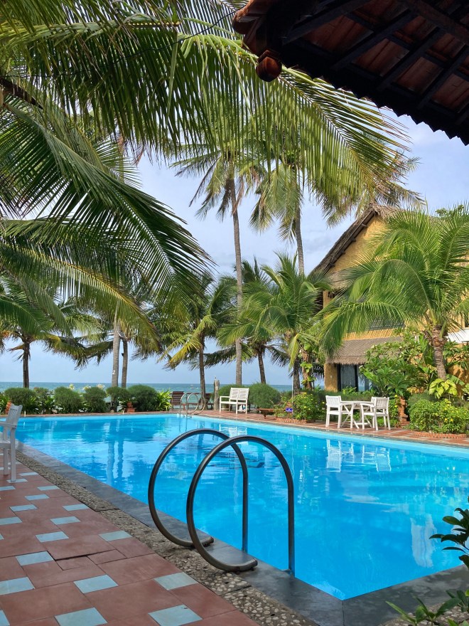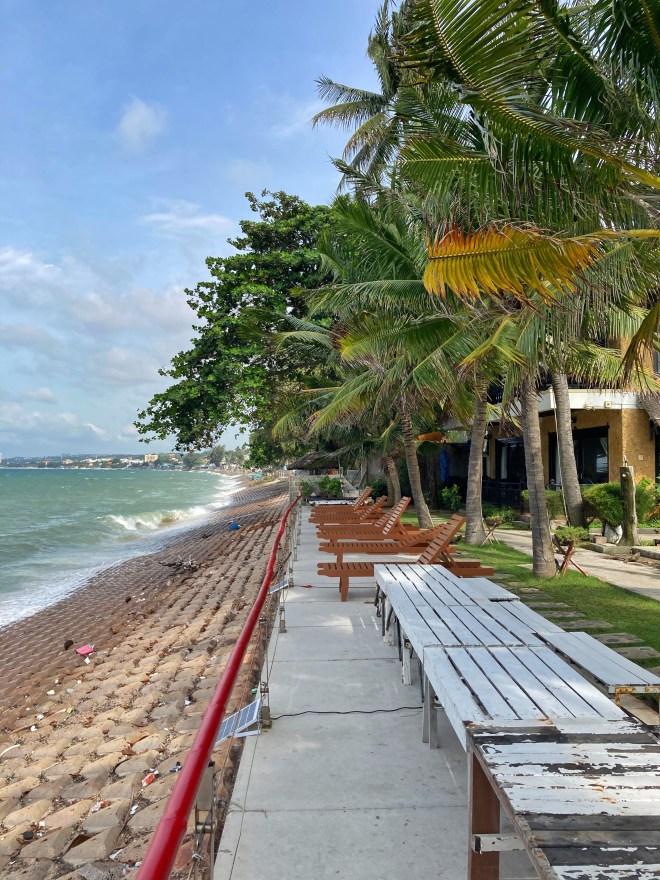 Po pár dnech jsme změnili lokaci, blíž k pláži. Počasí se tu trochu zhoršilo, ale oproti tomu, jaká tropická vedra sužují Evropu, tak jsem stále raději za příjemno. Bazén a bungalov máme pro sebe a mořské vlny hrají příjemně do uší. To, že jen na té malé soukromé pláži plave asi dvacet pet lahví, to rozpitvávat nebudu, lepší je si to sám posbírat, ale bez toho už by to asi nebyla Asie 😅